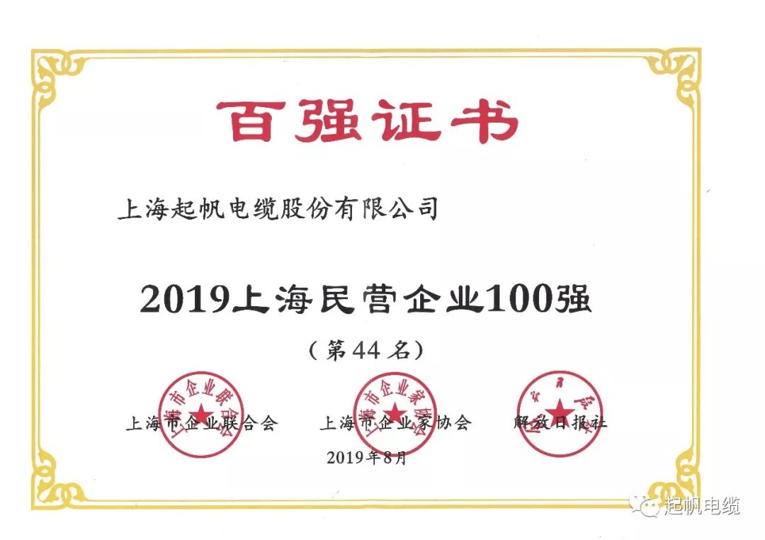 尊龙凯时z6com电缆股份有限公司以雄厚的实力和优异的的市场表现,荣获“2019上海企业100强的第96名”、“2019上海民营企业第44名”、“2019上海制造企业32名”、“2019上海民营制造企业14名”、“2019上海成长性企业32名”.